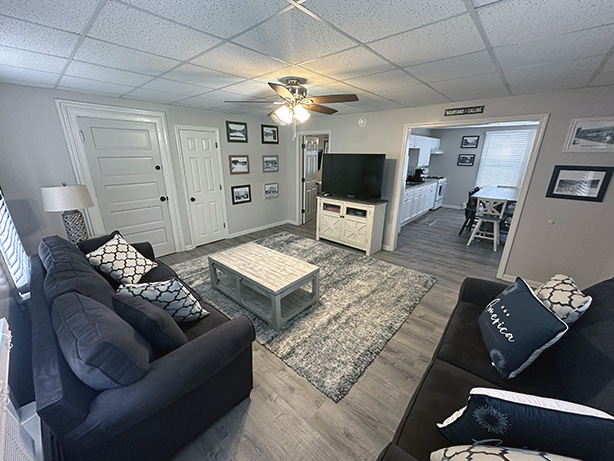 Unwind on the plush king-size bed or kick back in one of the two electric recliners, perfect for enjoying the 55” smart TV or the ambiance of the electric fireplace. Thoughtfully designed for relaxation, the studio blends vintage-inspired furnishings with modern amenities, creating a space that’s both inviting and convenient.